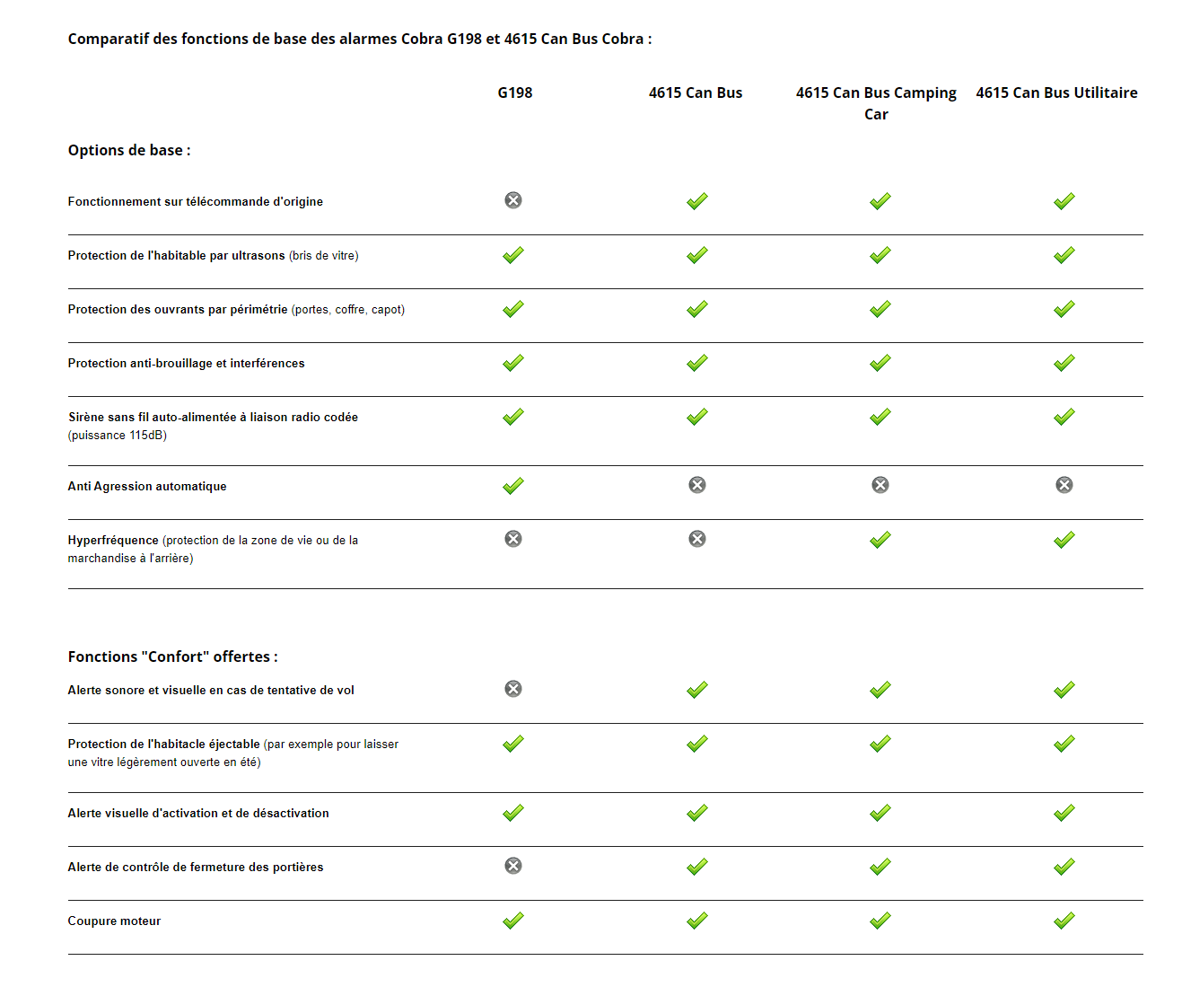 Alarmes Cobra G198, 4821 Can Bus Camping-car et 4821 Can Bus Utilitaire